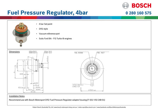 Bosch Fuel Pressure Regulator, Adjustable 3.5 - 5.0bar